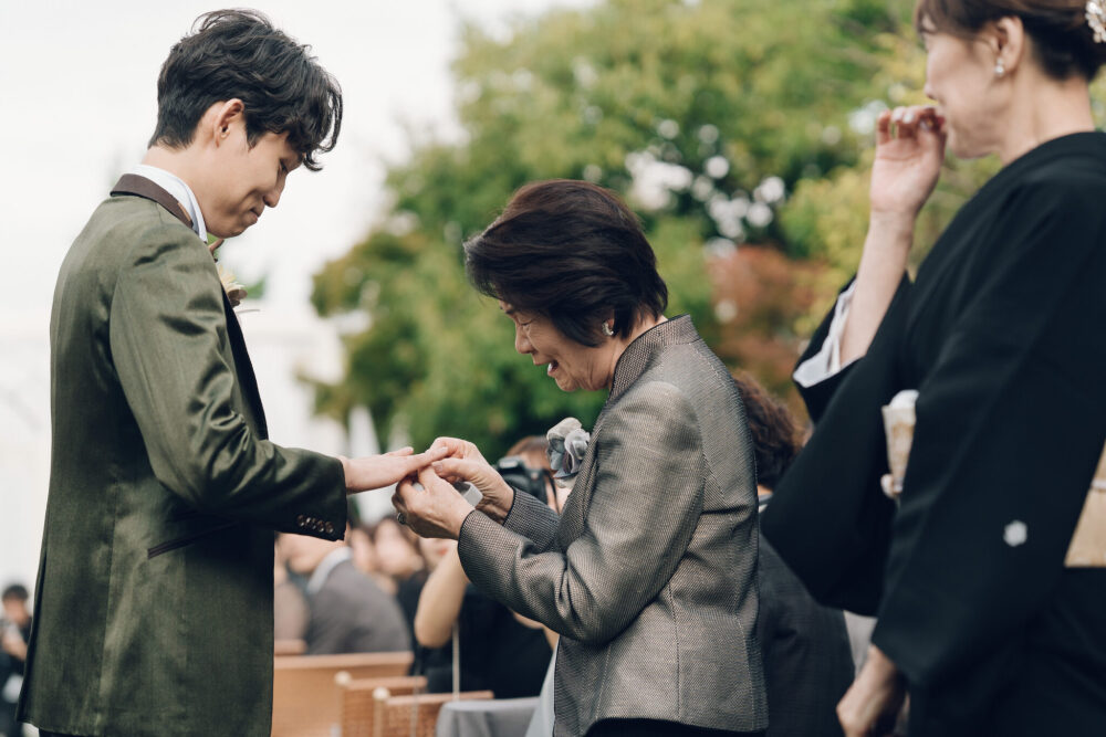 結婚式当日におばあ様から受け継がれた、おじい様の指輪。